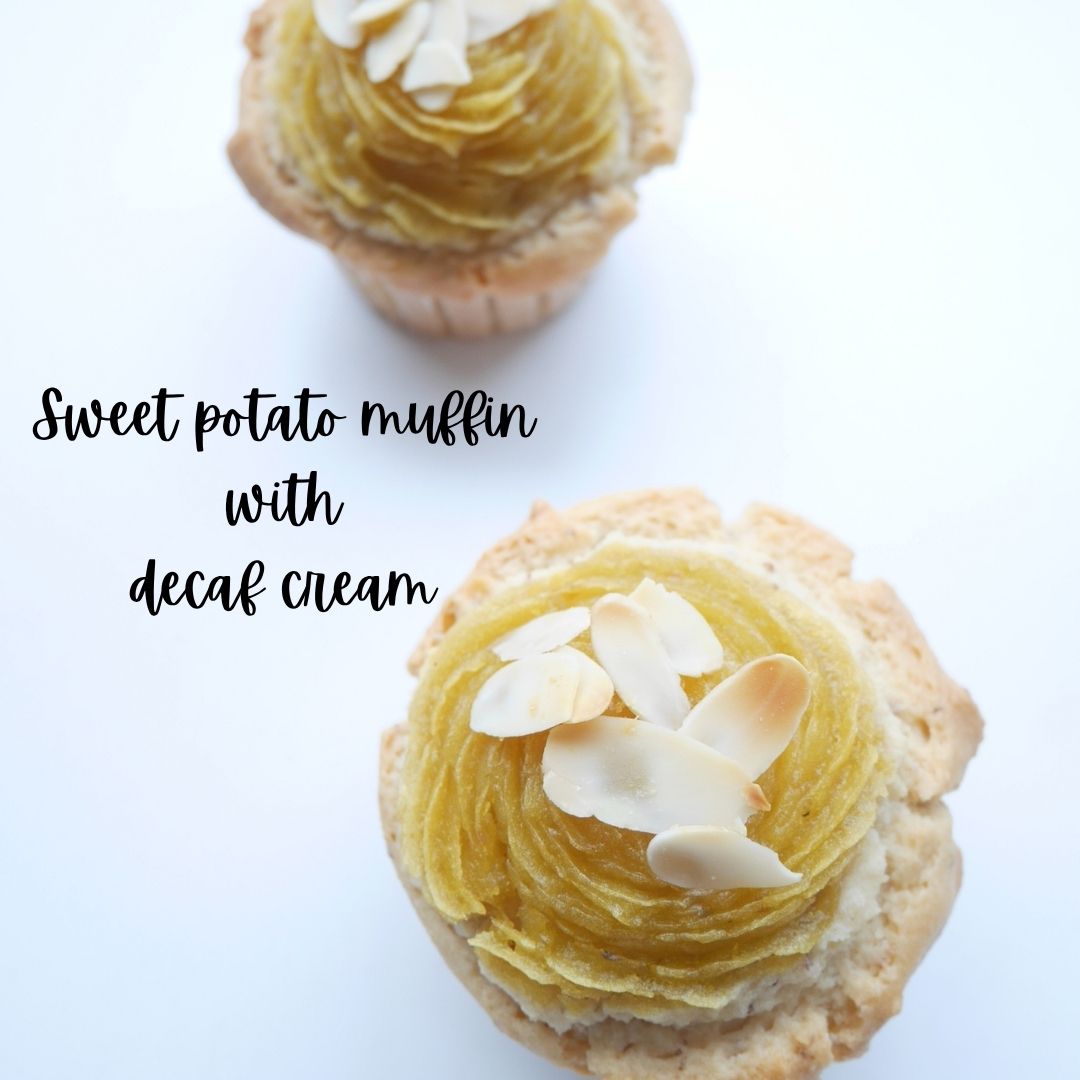 無農薬のさつまいもで作ったスイートポテトをのせ焼き上げています。